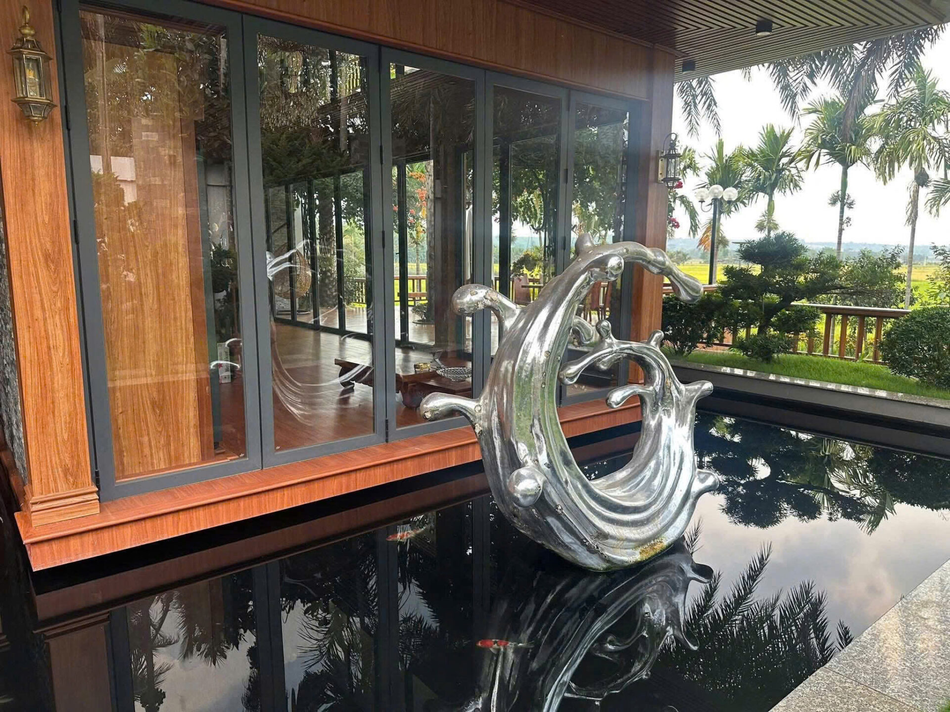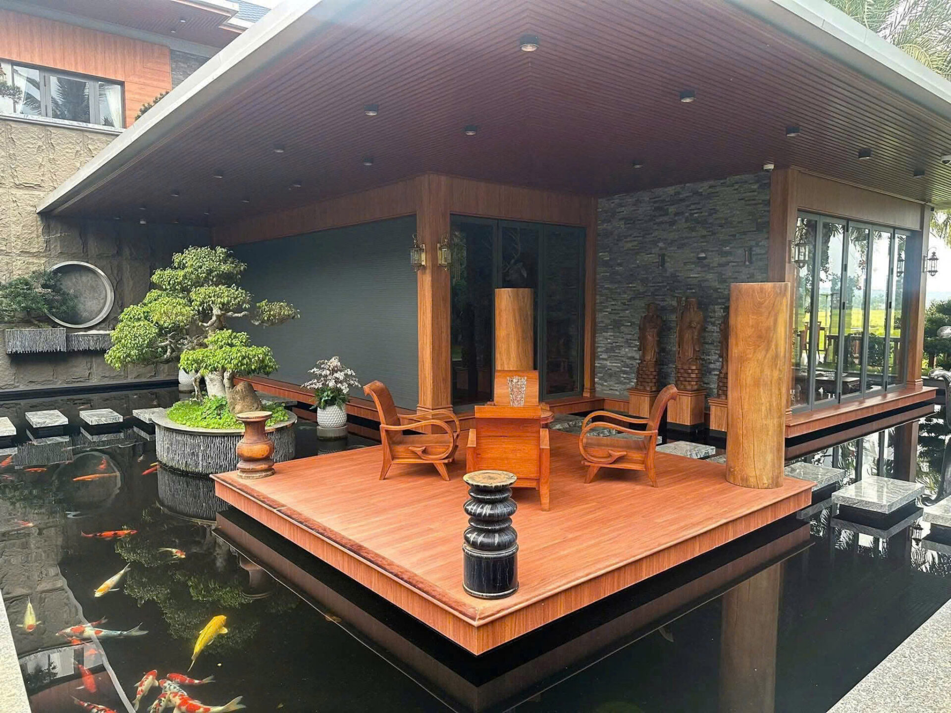 Khuôn viên sẵn hồ sen, hồ cá, sân vườn sức chứa 10 ô tô.