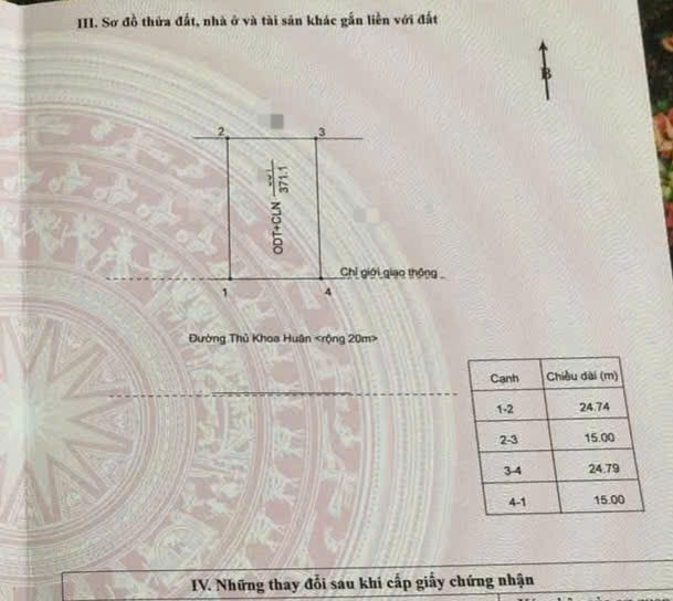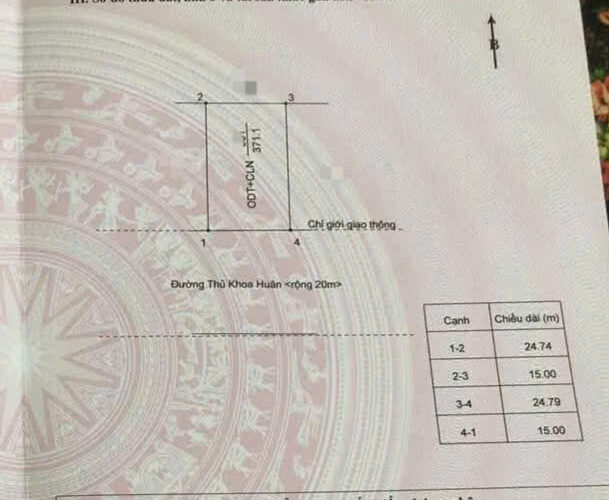 LÔ ĐẤT MẶT TIỀN THỦ KHOA HUÂN 15×24,7