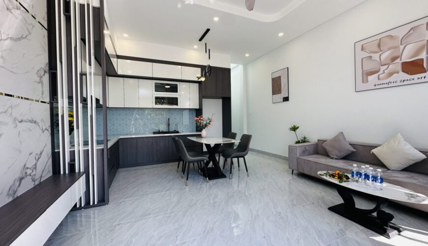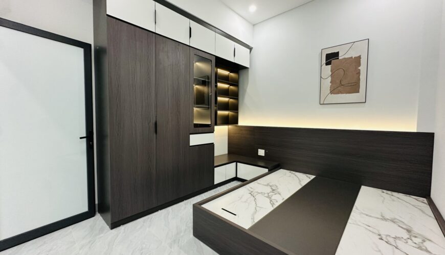 Nhà đẹp thiết kế hiện đại thông thoáng , đường ô tô vivu , nhà bao gồm : 2 phòng ngủ , 1 vệ sinh , bếp liền kề khách , sân ô tô, full nội thất thiết kế cơ bản xịn xò … 2 giếng trời lấy ánh sáng khá tốt , lắp sẵn hệ thống năng lượng mặt trời nóng lạnh đầy đủ …..
