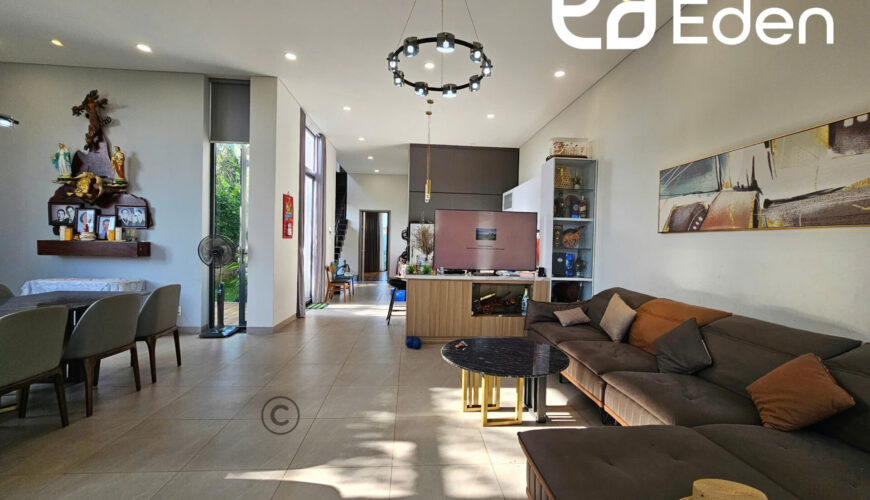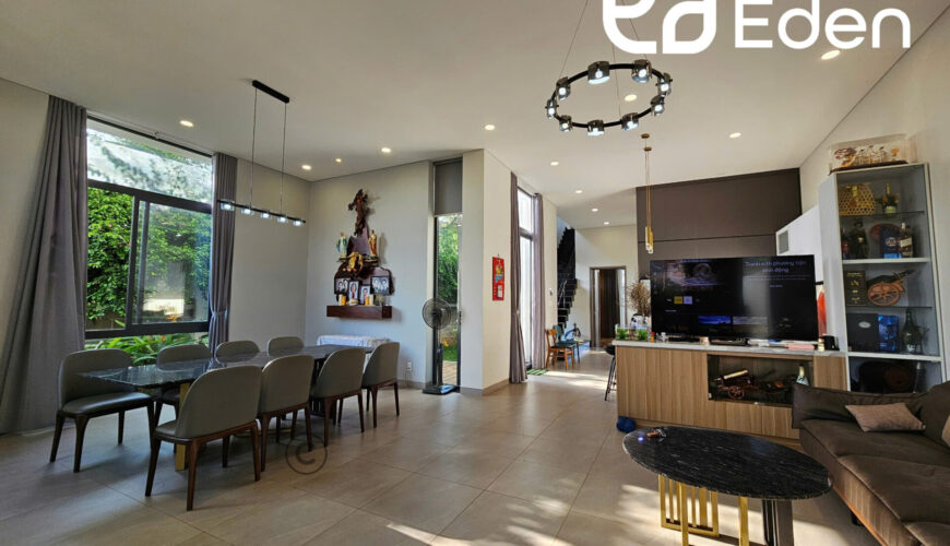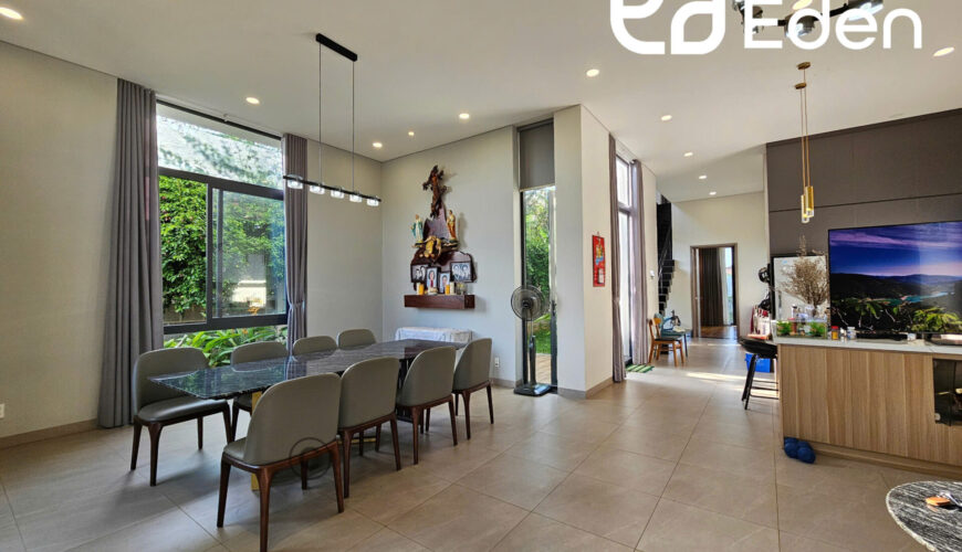 + Tầng trệt: có phòng khách, bếp và phòng ăn kết nối rộng rãi, thoáng mát, 1 nhà vệ sinh chung, 1 phòng ngủ master với nhà vệ sinh riêng và lối ra bể bơi phía sau nhà.